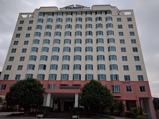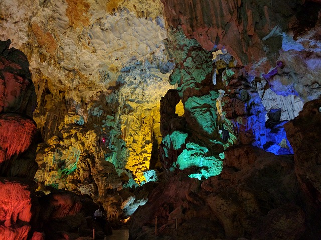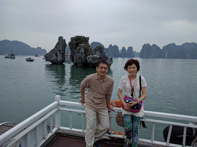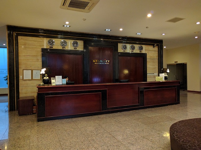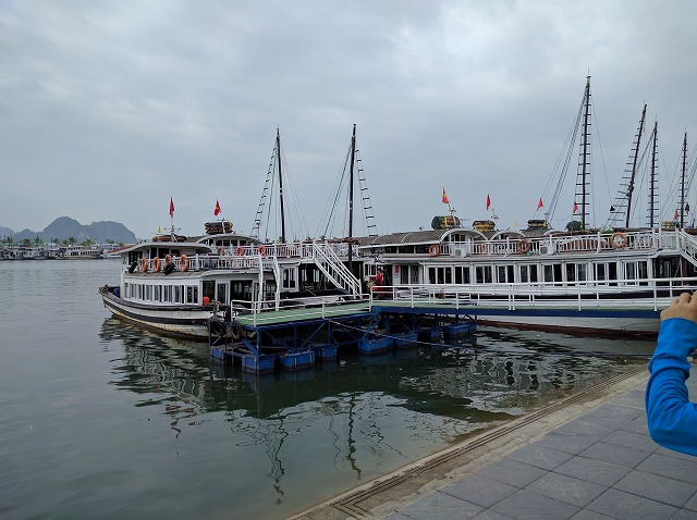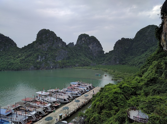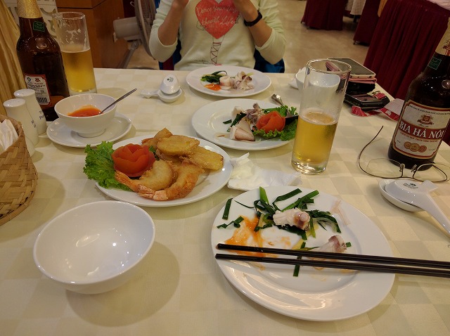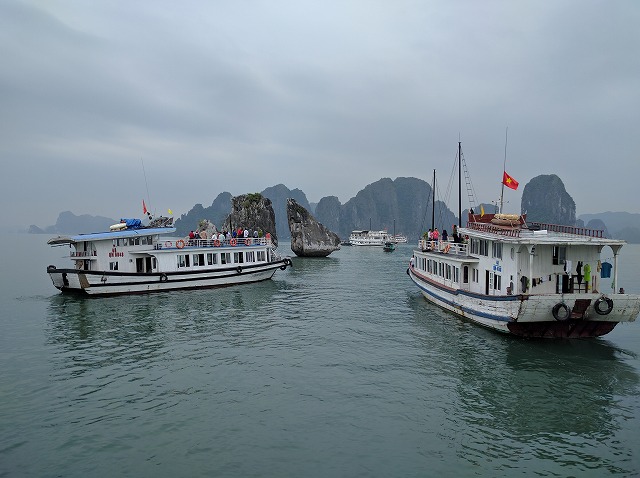 朝 ホテル発ホーチニン空港へ ラウンジにて休憩 08:45 ホーチミン空港発ベトナム航空(国内線)でハノイへ (機内、機内食) 10:40 ハノイ空港着 昼 空港内のレストランにて昼食 午後 ハロン湾へ(約4時間) 途中バッチャン村にて陶器のお買い物 夕刻 ハロン湾着 海鮮料理の夕食後ホテルへ 夜 徒歩で近くのHalong Parkへ (ライトアップされた園内、ロープウェイに乗車) | STARCITY Halong Bay Hotel (外観、フロント、部屋) |