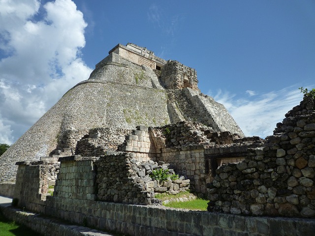 高さ38mで楕円形の底辺が特徴の「魔法使いのピラミッド」を始め、切石のモザイク装飾が美しい総督の館、尼僧院、球戯場、大ピラミッドなど。近くには雨の神チャックが壁一面に飾られたカバー遺跡もある。