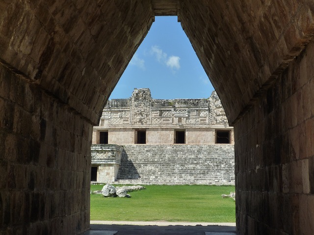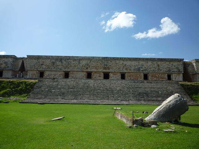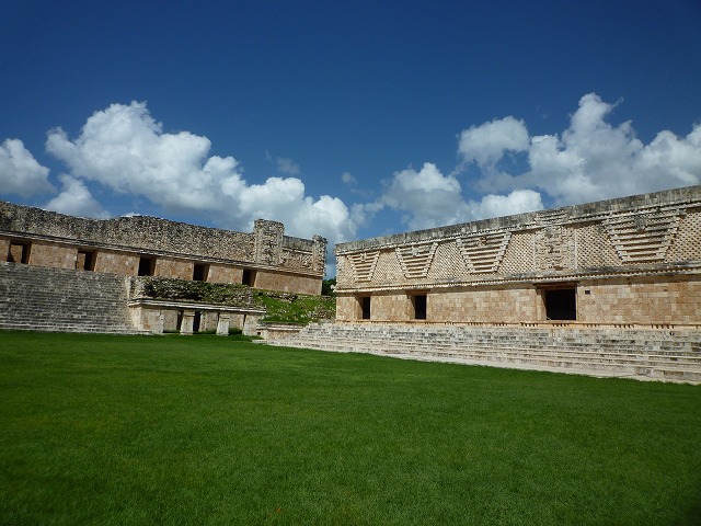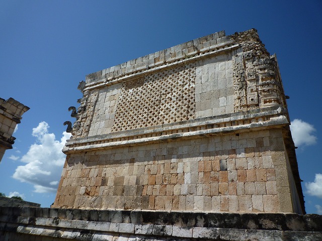 ユカタン半島北部で3〜10世紀に栄えたマヤの都市遺跡で、プウク様式というこの地方独特の建築様式が特徴。建築物の壁一面が、幾何学模様や蛇などのモチーフで華麗に装飾される。